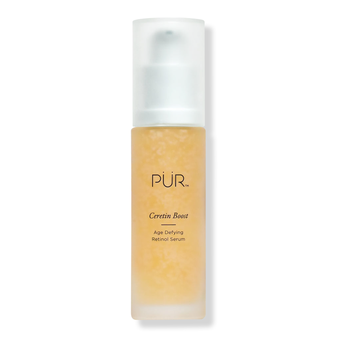 PÜR Ceretin Boost Age Defying Retinol Serum targets fine lines and uneven skin tone. This gentle retinol formula improves texture while supporting skin's natural renewal.