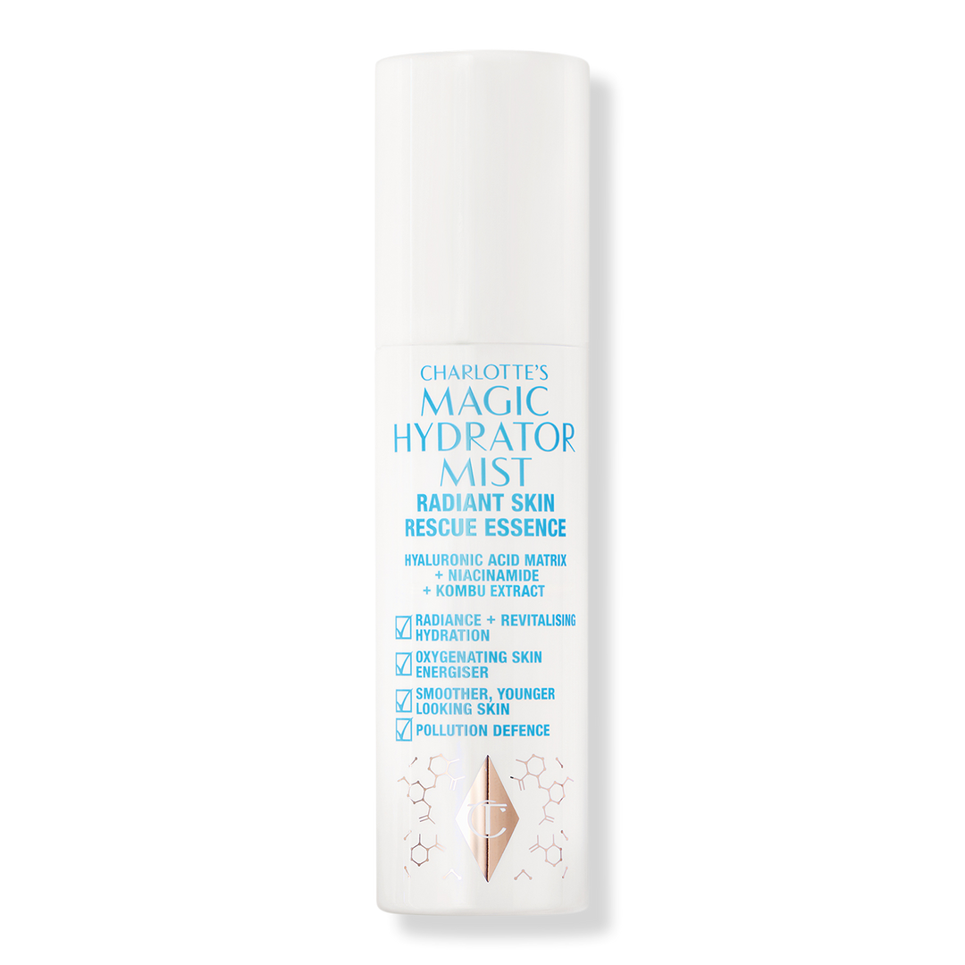 Charlotte's Magic Hydrator Mist is an oxygenating, hydrating face mist with hyaluronic acid, niacinamide and pollution defense for an instant dewy glow on-the-go.