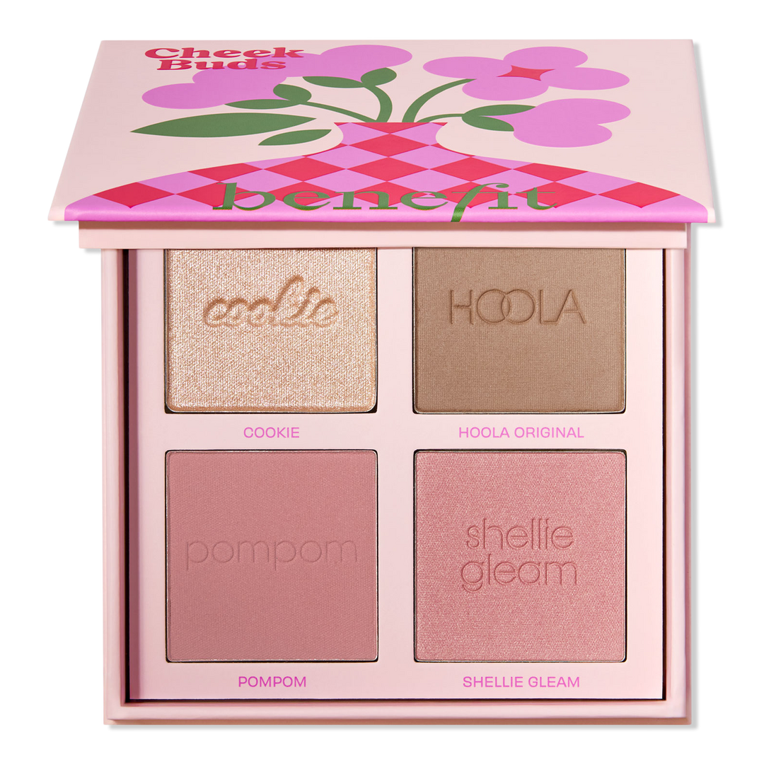 A limited-edition mini full face palette featuring bronzer, highlighter, and two blush shades. Hoola adds a natural-looking bronze, Cookie delivers a buildable golden highlight, and you can choose between PomPom for a rosy flush or Shellie Gleam for a soft, shimmery golden-pink finish.