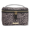 The Tartan + Twine Cheetah Charm Deluxe Train Case with polyester cheetah print keeps you organized, on-trend, and on-the-go! With brush slots and pocket for smaller items.