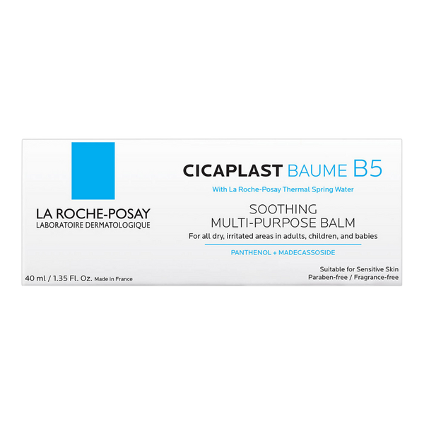 La Roche-Posay Cicaplast Balm B5 Soothing Therapeutic Multi Purpose Cream with shea butter relieves dry skin and irritation on the face, lips, body and hands.