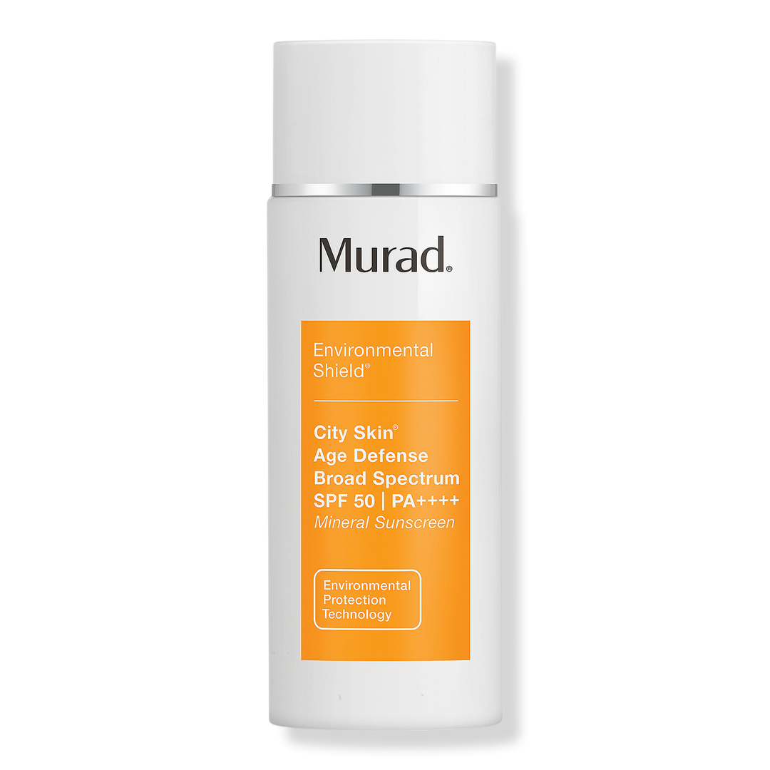Murad City Skin Age Defense Broad Spectrum SPF 50 is a 100% mineral SPF that shields against digital blue light damage, UVA, UVB & pollution.