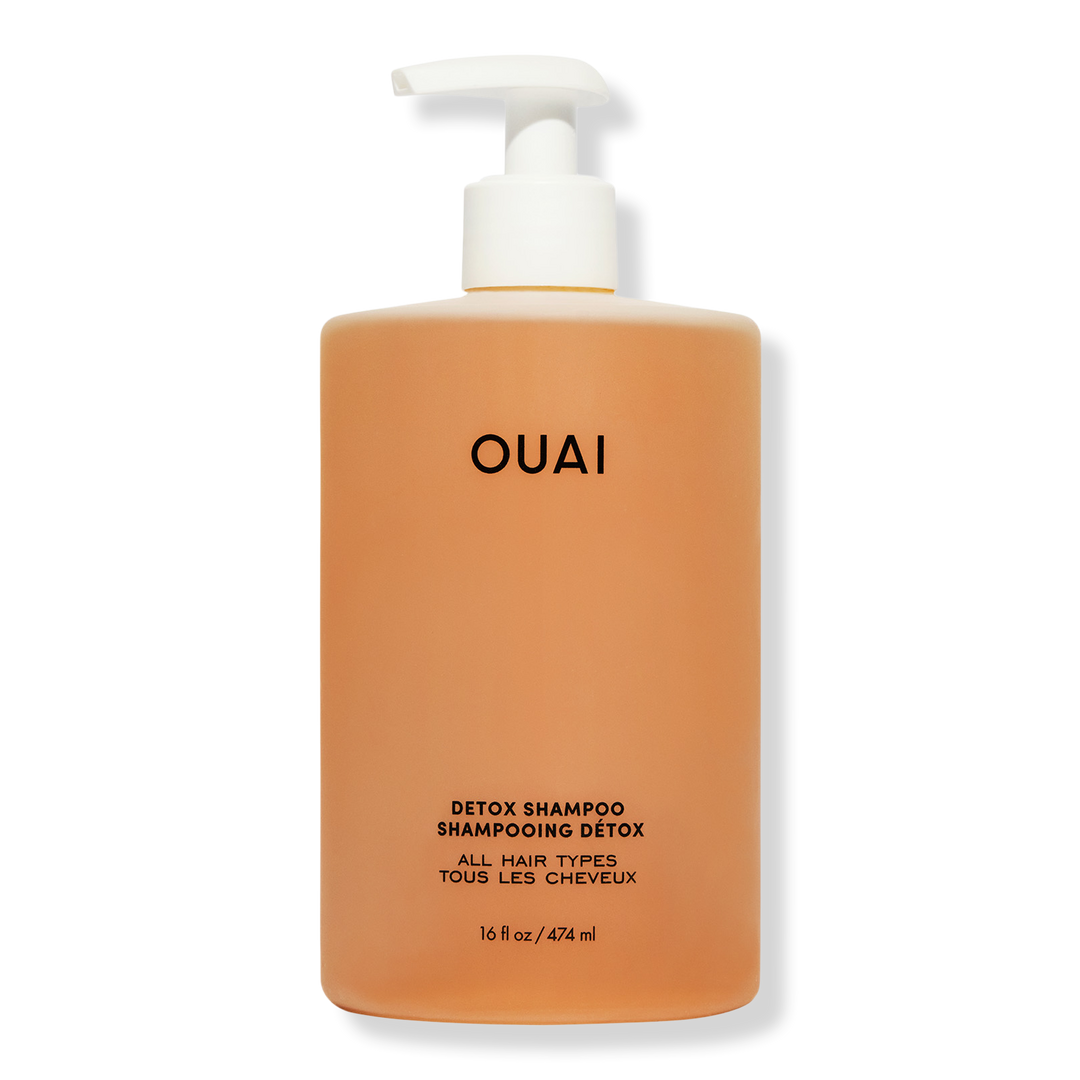 OUAI's Clarifying Detox Shampoo deeply cleanses away dirt, oil and product buildup with apple cider vinegar while keratin helps strengthen hair.