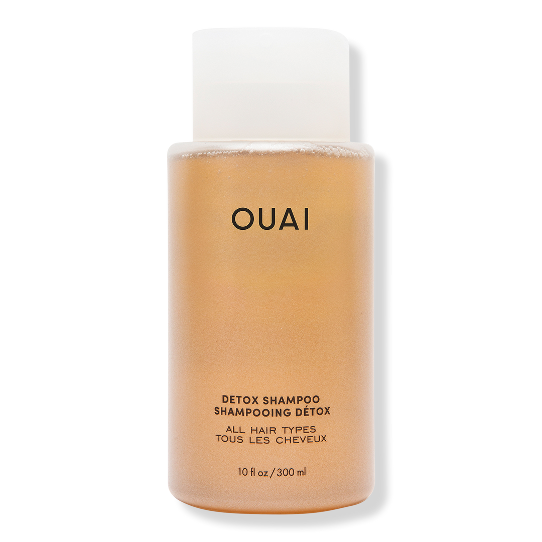 OUAI's Clarifying Detox Shampoo deeply cleanses away dirt, oil and product buildup with apple cider vinegar while keratin helps strengthen hair.