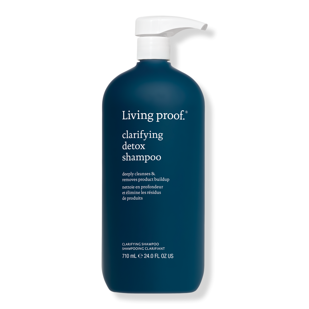 Living Proof Clarifying Detox Shampoo deeply cleanses hair, removing product + pollution buildup, excess oil, and heavy metals deposited from hard water.