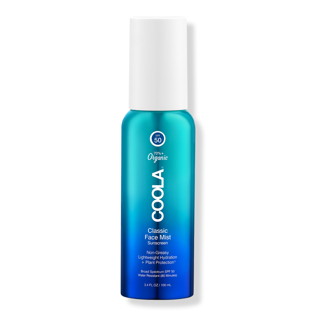 COOLA'S Classic Face Sunscreen Mist SPF 50 is easy to use, easier to love organic, and applies like a breeze. Over make-up, on-the-go, or anytime you desire to refresh and protect.