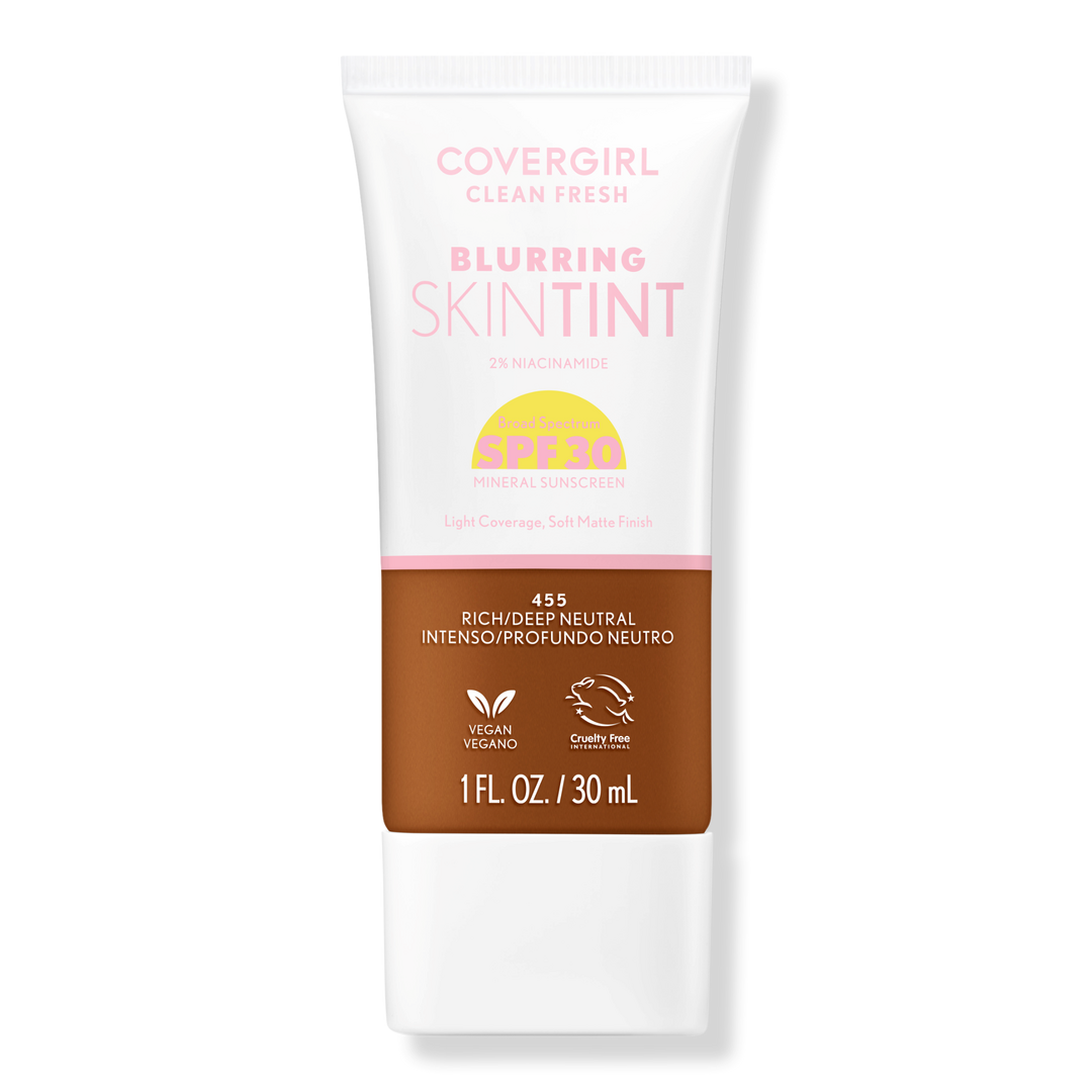 COVERGIRL Clean Fresh Blurring Skin Tint is a weightless liquid foundation with a soft matte finish. This COVERGIRL foundation contains Broad Spectrum SPF 30 Mineral Sunscreen to protect skin from the sun while blurring pores and smoothing skin for all day wear.
