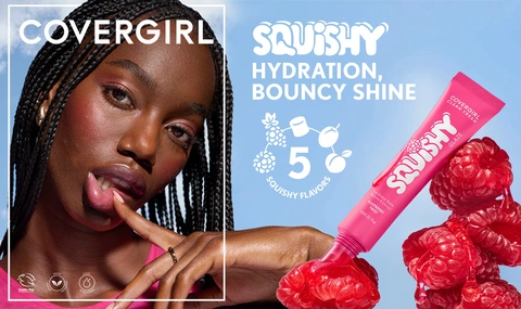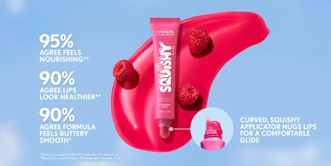Get squishy hydration and bouncy shine with COVERGIRL Clean Fresh Squishy Glaze Lip Butter Balm. This tinted glaze bursting with irresistibly, squishy flavor delivers up to 9 hours of hydration. Lips look fuller, plump and supple smooth.