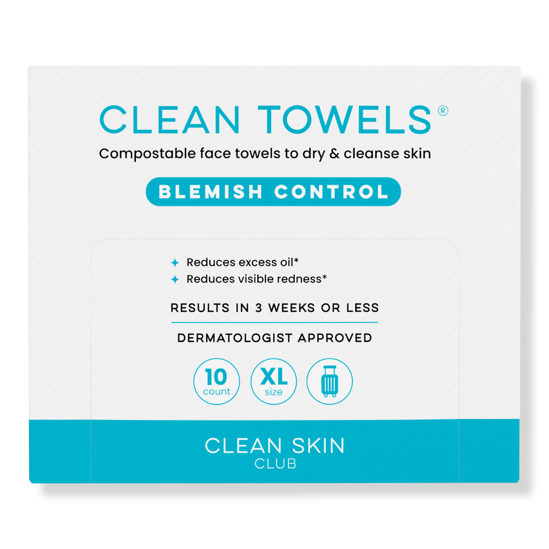 Clean Skin Club Clean Towels Blemish Control Disposable Face Towels are travel-ready, featuring an exfoliating texture and clinically shown to reduce oil and redness.