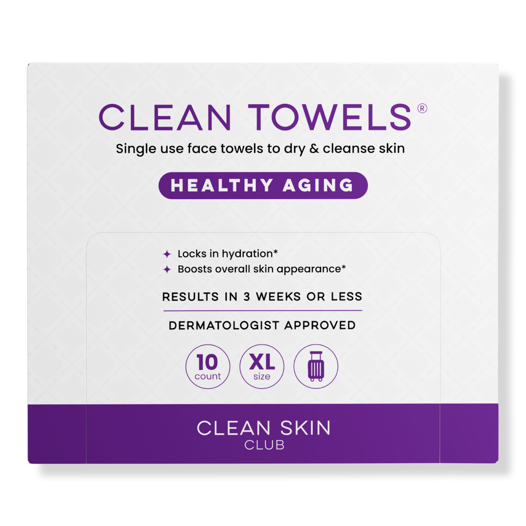 Clean Skin Club Clean Towels Healthy Aging Disposable Face Towels are travel-ready and infused with glycerin to lock in hydration and visibly reduce fine lines and wrinkles.