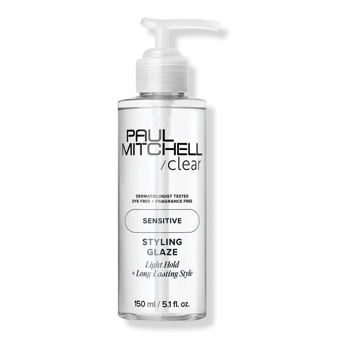 Dye-free, fragrance-free and dermatologist-tested, Paul Mitchell Clear Styling Glaze delivers soft hold without irritating a sensitive scalp or skin.