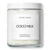 HERBIVORE COCO MILK Hydrating Milk Bath Soak contains coconut milk, coconut pulp, and vanilla to help nourish and soften skin with a creamy coconut scent.