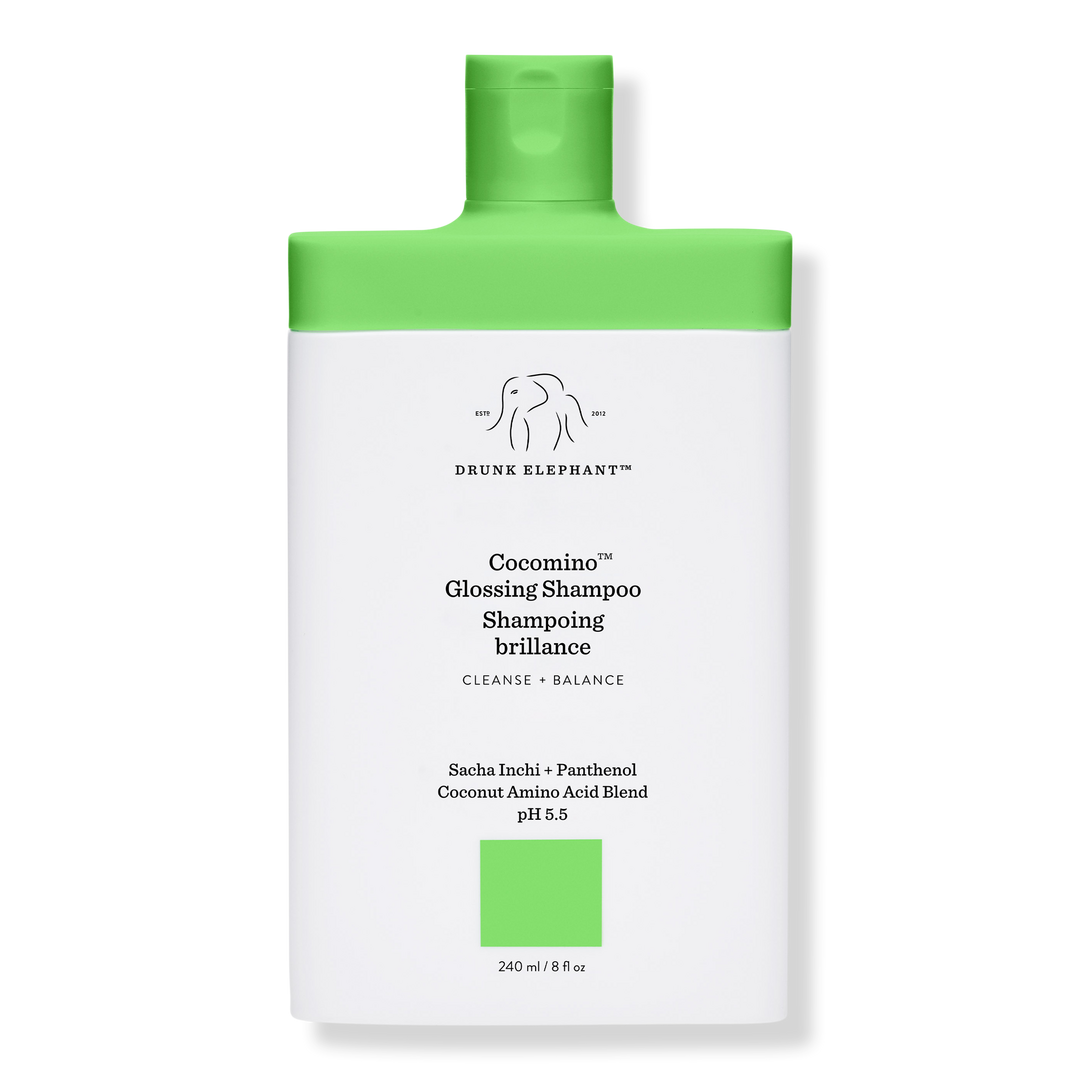 Drunk Elephant's Cocomino Glossing Shampoo is formulated with both scalp and hair in mind. A sulfate-free, color-safe blend of coconut-based surfactants creates a gentle, creamy foam that lifts dirt, styling products, and other substances without damaging the hair shaft or stripping color.