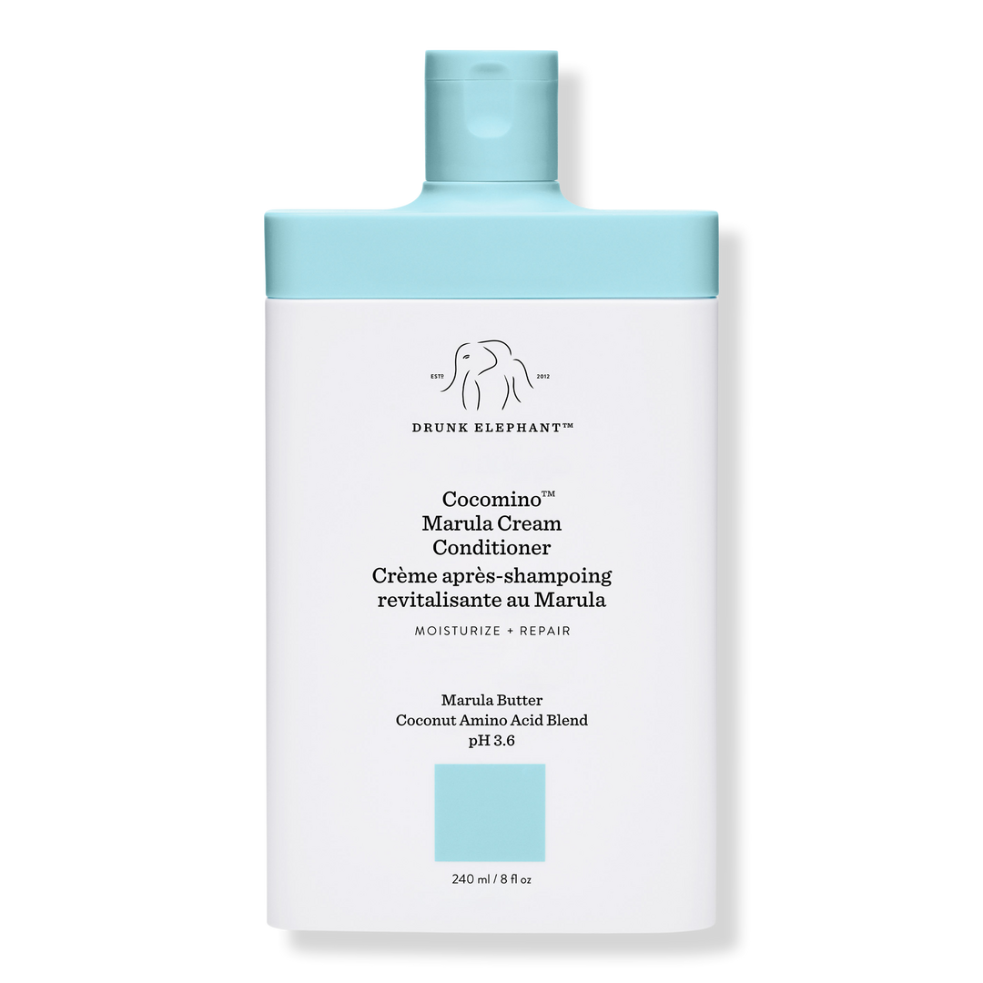 Drunk Elephant's Cocomino Marula Cream Conditioner is a nourishing blend of nonfragrant plant oils and butters work to soften, smooth, and detangle while fortifying the hair shaft to protect against the damage done by heat styling and color treatments.