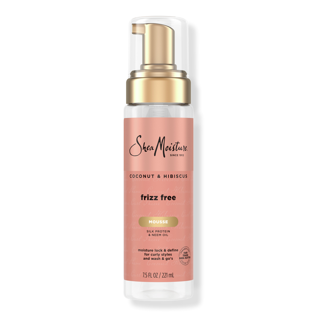 - SheaMoisture Coconut & Hibiscus Frizz-Free Curl Mousse, blended with coconut and neem oil, helps to control frizz while adding a brilliant shine to your curly hair
