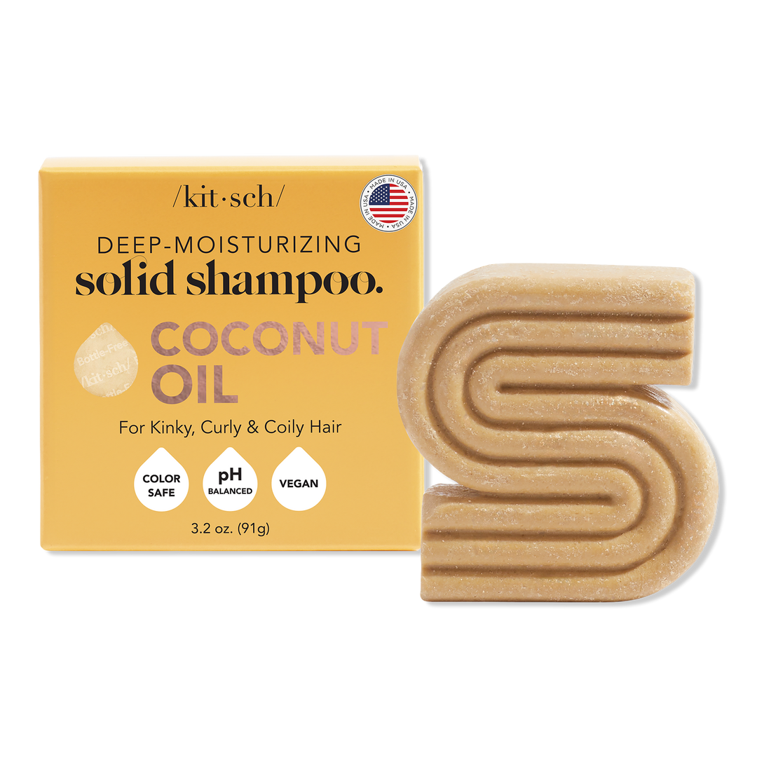 Kitsch Coconut Oil Deep-Moisturizing Solid Shampoo Bar deeply cleanses and moisturizes kinky, curly, and coily hair from roots to ends.