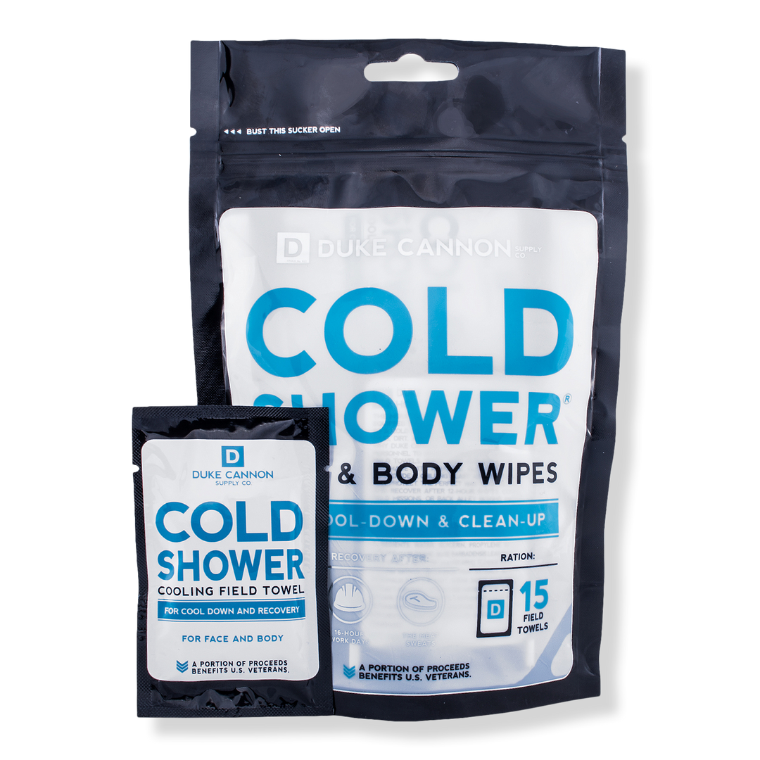 The Duke Cannon Supply Co. Cold Shower Field Towels Face & Body Wipes cleanses and refreshes when you need it most. Great for military use in the field, camping, outdoor activities and more. Soothing menthol helps you cool down and recover quickly from strenuous activity.