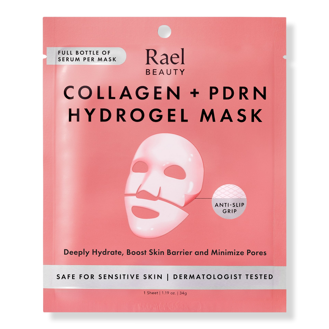 Rael Collagen + PDRN Mask delivers intense hydration and nutrients with 34g of serum. The anti-slip hydrogel hugs skin comfortably, turning translucent as it works. Powered by Salmon PDRN, hyaluronic acid, collagen, and peptides for firmer, smoother, radiant skin - in just one hour.