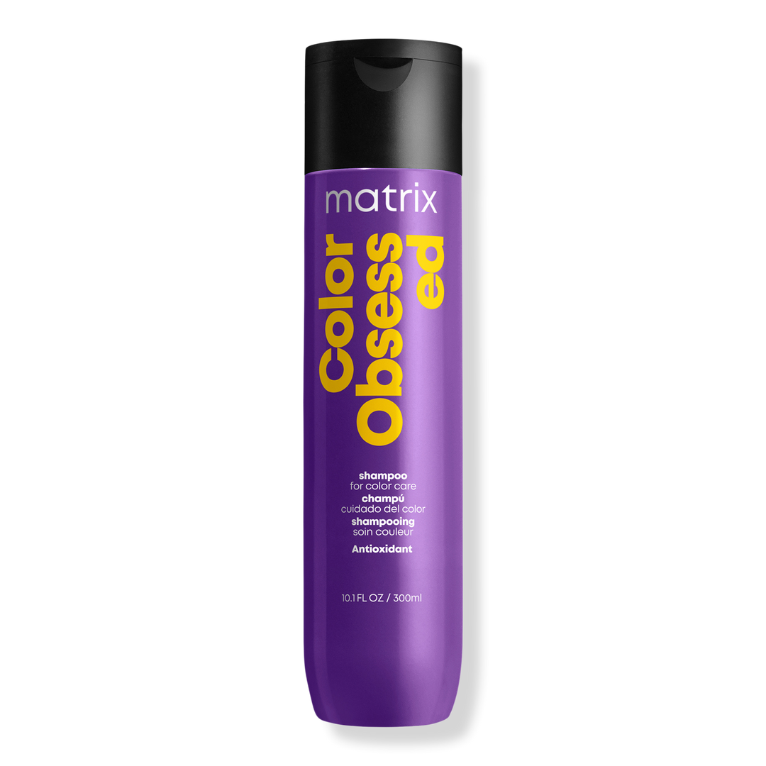 Matrix Color Obsessed Shampoo for color care. Gently cleanness away dulling residue as it renews moisture and helps strengthen porous hair, protects against fading, and extends the life of color vibrancy. This clarifying shampoo also refreshes root lift and volumizes hair.