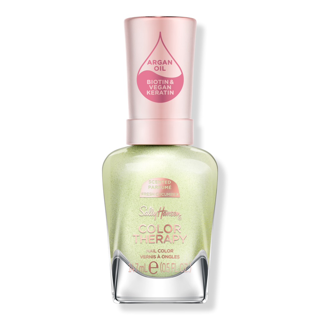 Discover Sally Hansen Color Therapy scented nail polish. Color that calms. Nail care polish in beautiful colors now infused with Argan Oil, Biotin, and Vegan Keratin for stronger nails! A 3-in-1 nail polish that protects nails from breaking, splitting, and cracking for stronger nails in just 7 days!