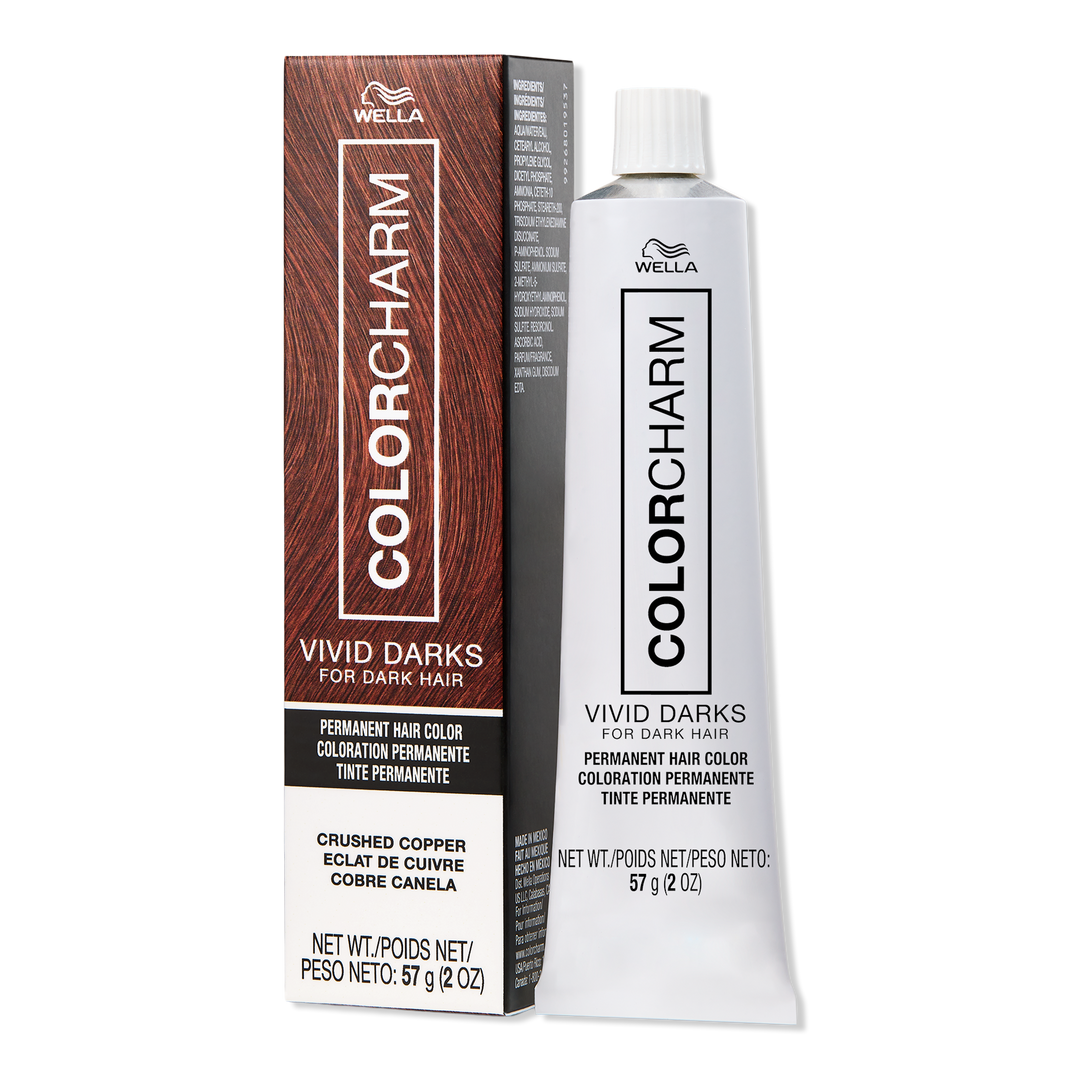 Wella Colorcharm Vivid Darks Permanent Cream Color achieves vibrant color on naturally dark hair. This permanent dye lifts color up to 3-4 levels, no bleach needed, and helps combat damage with a built-in metal purifier.