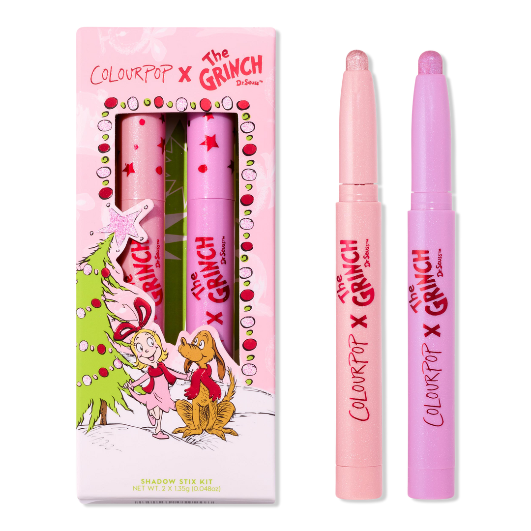 This limited-edition ColourPop x Grinch Liked Christmas a Lot Shadow Stix Kit features creamy eyeshadow sticks with a metallic finish. The easy-to-use formula glides on effortlessly for long-lasting, high impact color - just swipe, blend, go.