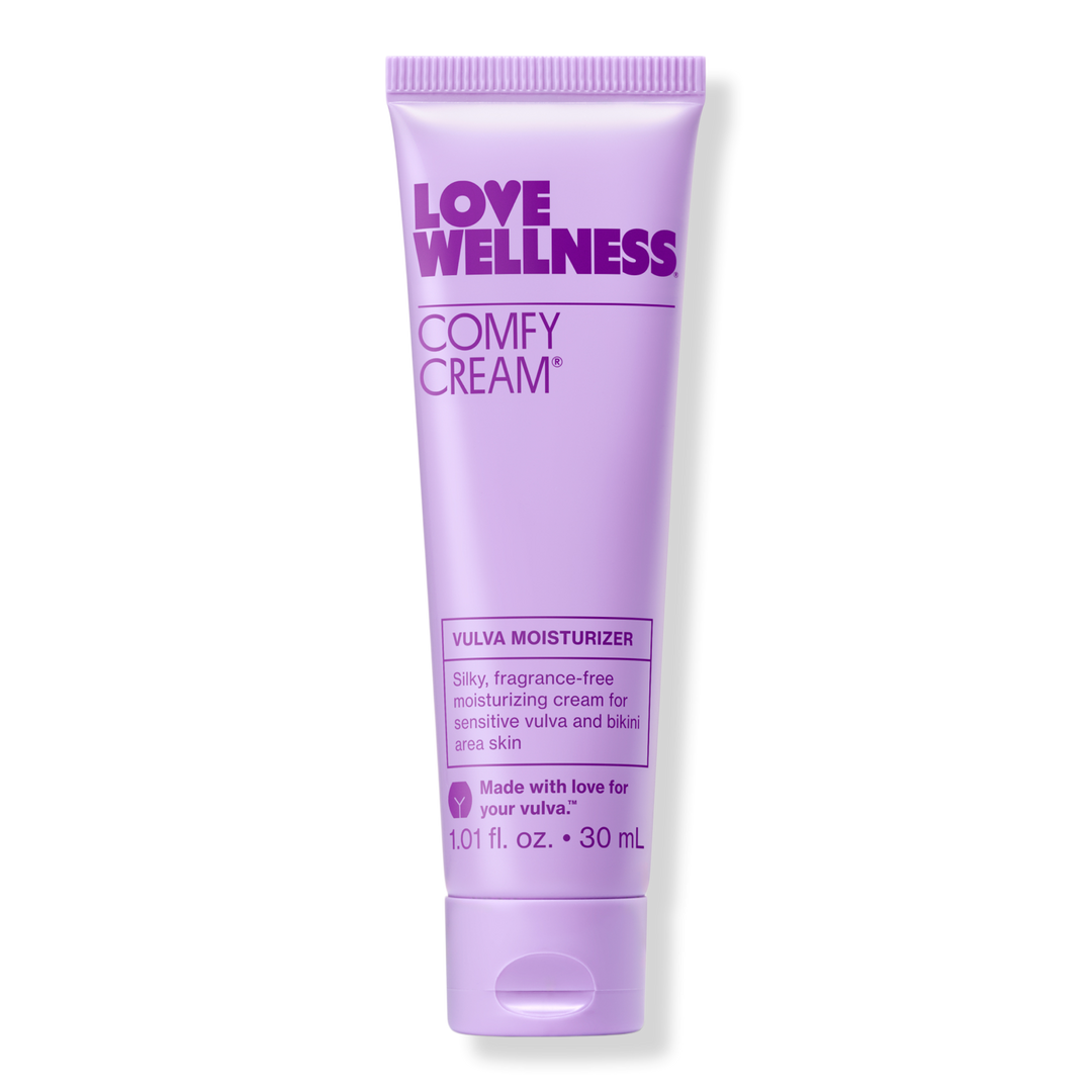 Love Wellness' Comfy Cream is a silky, moisturizing cream for sensitive vulva and bikini area skin.