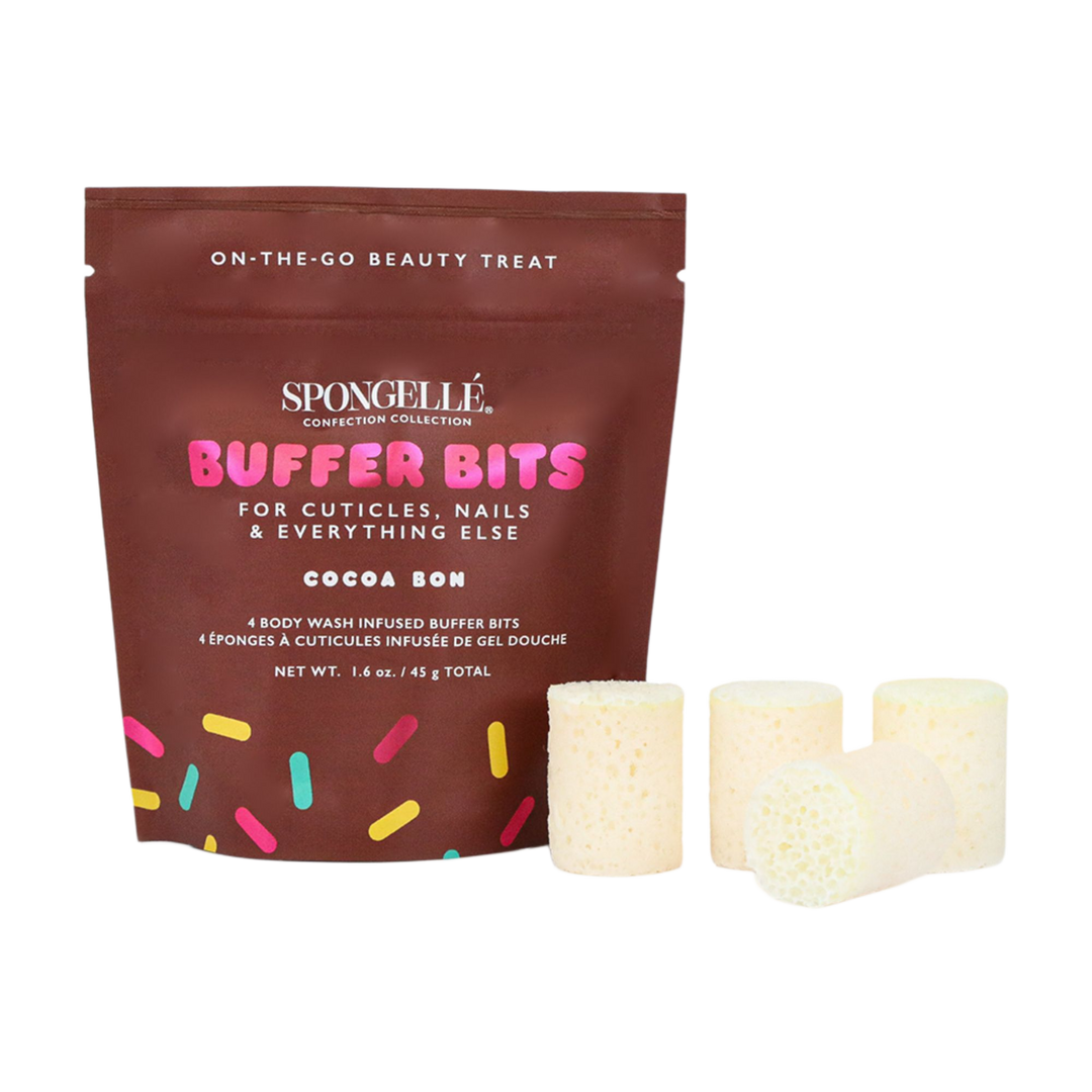 Inspired by tiny donut holes, Mini Buffer Bits in Burnt Sugar gently exfoliate nails, cuticles & dry patches. Dual-sided and infused with triple butter & sugarcane extract, they leave a sweet scent of strawberry blossom, pink sugar & vanilla.