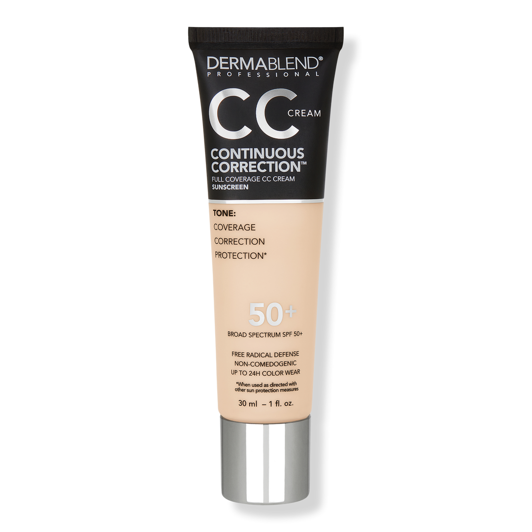#1 Dermatologist Recommended Coverage Brand, Dermablend Continuous Correction Tone-Evening CC Cream SPF 50+. Non-comedogenic oil-free CC Cream foundation provides full coverage, broad spectrum SPF 50+, and free radical defense with a blend of antioxidants. Up to 24 hour color wear.