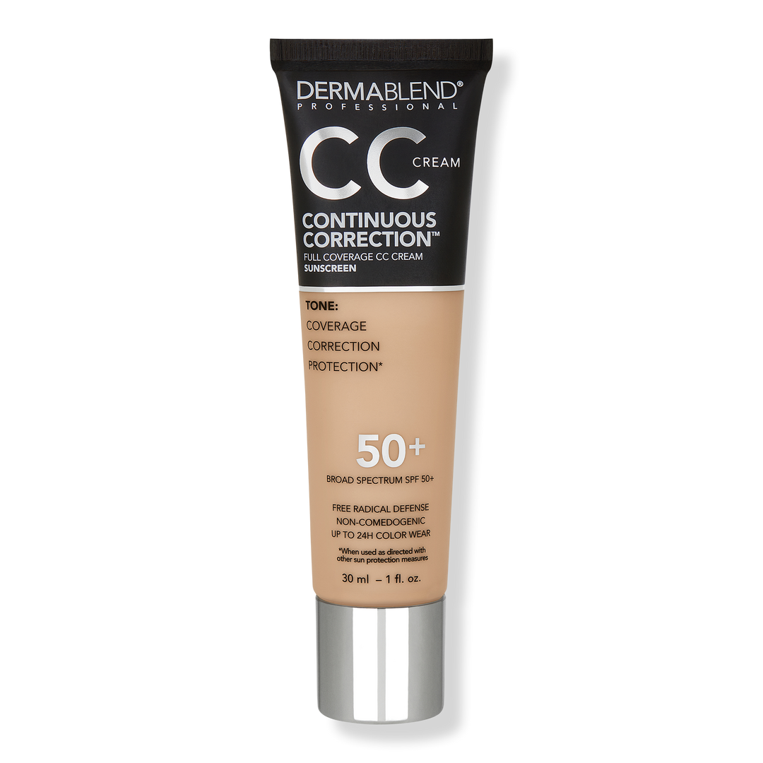 #1 Dermatologist Recommended Coverage Brand, Dermablend Continuous Correction Tone-Evening CC Cream SPF 50+. Non-comedogenic oil-free CC Cream foundation provides full coverage, broad spectrum SPF 50+, and free radical defense with a blend of antioxidants. Up to 24 hour color wear.
