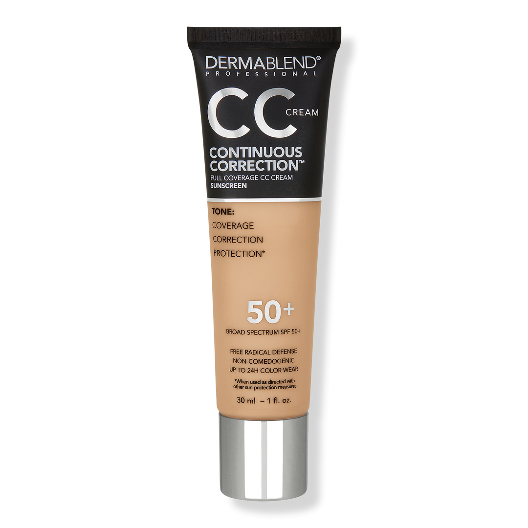#1 Dermatologist Recommended Coverage Brand, Dermablend Continuous Correction Tone-Evening CC Cream SPF 50+. Non-comedogenic oil-free CC Cream foundation provides full coverage, broad spectrum SPF 50+, and free radical defense with a blend of antioxidants. Up to 24 hour color wear.