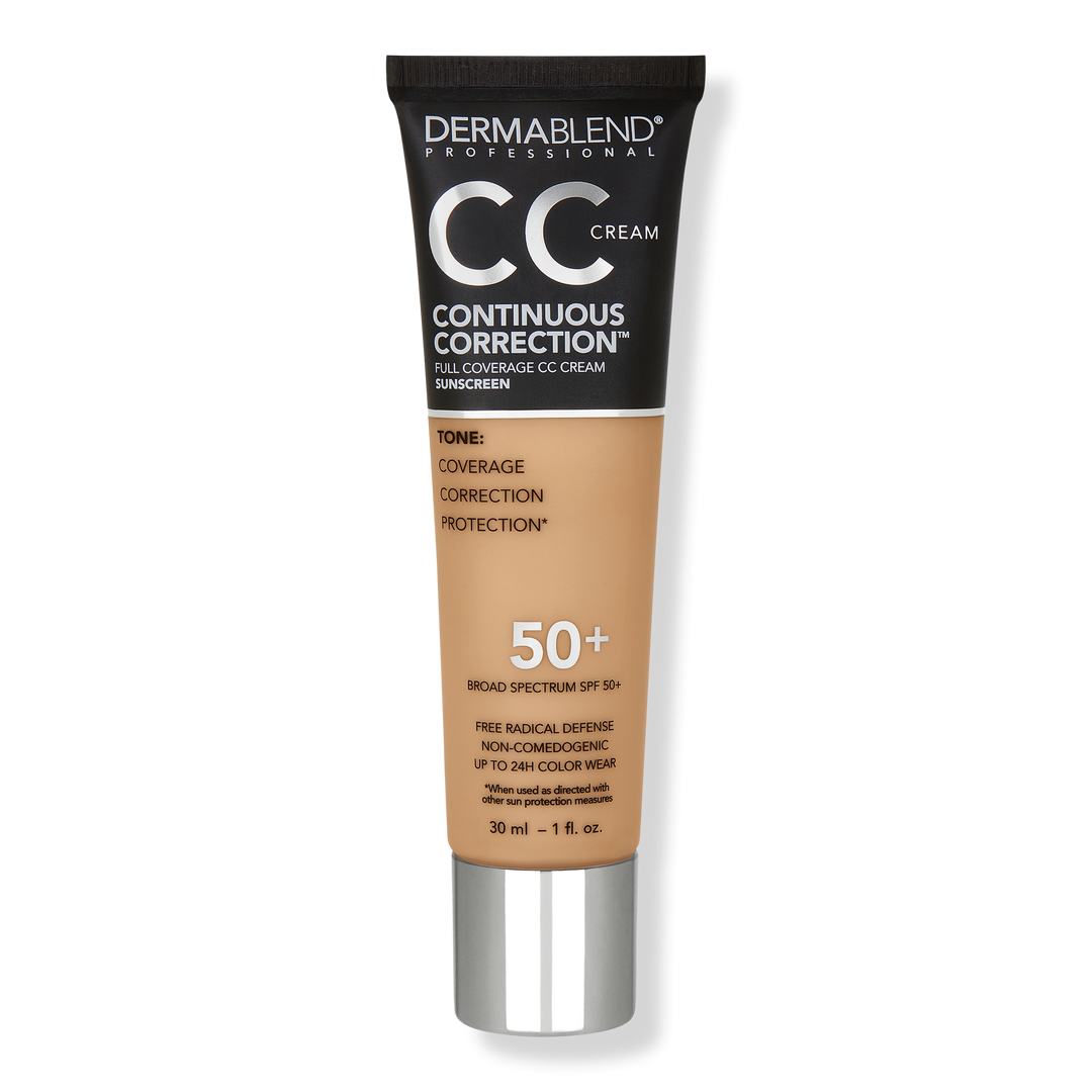 #1 Dermatologist Recommended Coverage Brand, Dermablend Continuous Correction Tone-Evening CC Cream SPF 50+. Non-comedogenic oil-free CC Cream foundation provides full coverage, broad spectrum SPF 50+, and free radical defense with a blend of antioxidants. Up to 24 hour color wear.