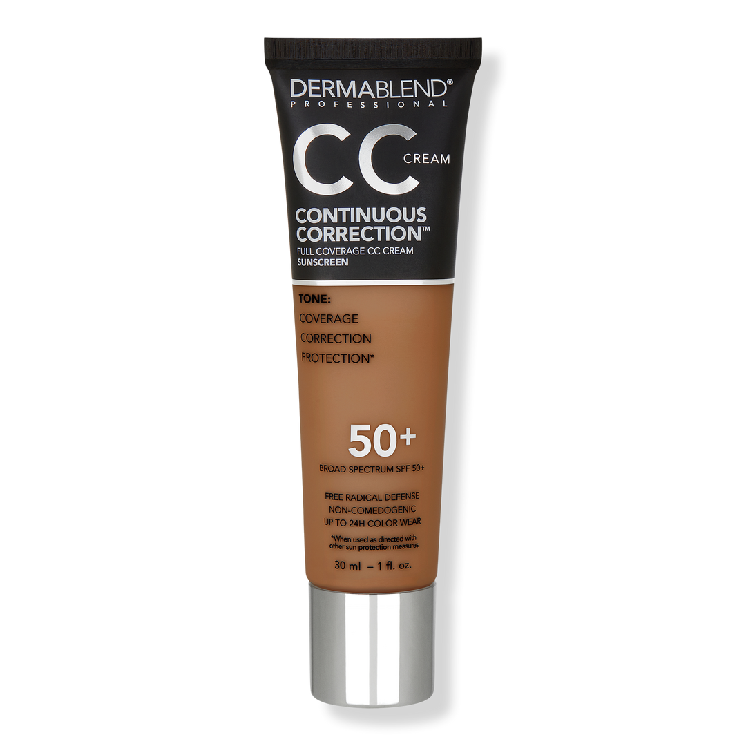 #1 Dermatologist Recommended Coverage Brand, Dermablend Continuous Correction Tone-Evening CC Cream SPF 50+. Non-comedogenic oil-free CC Cream foundation provides full coverage, broad spectrum SPF 50+, and free radical defense with a blend of antioxidants. Up to 24 hour color wear.