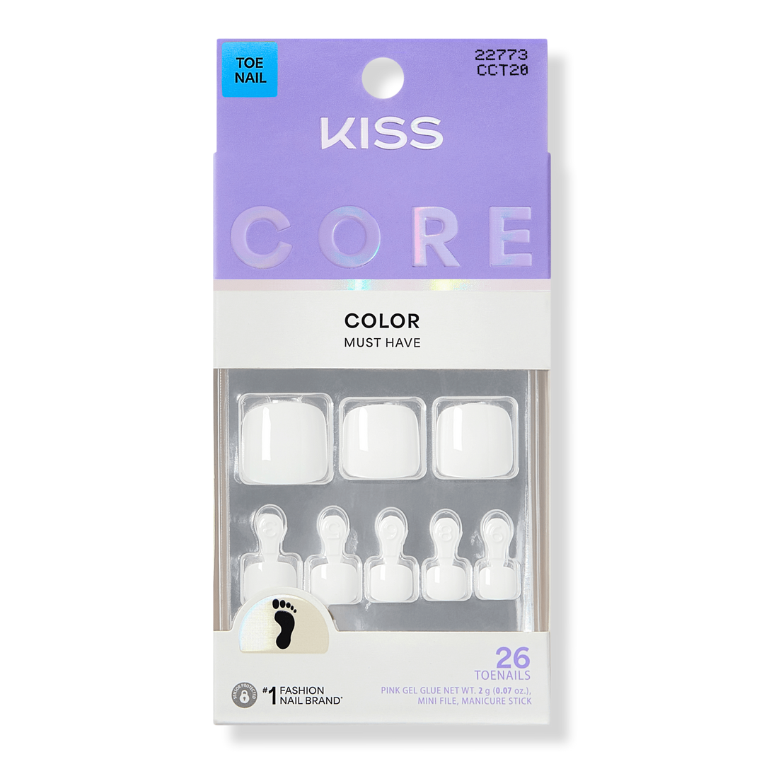 NEW Look. MORE Nails. BETTER Fit! For the pedicure lover who wants a perfect polished look with zero salon time. KISS CORE Color Press On Toenails come in top wearable shades for a fresh, everyday look you can count on.