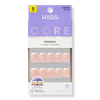 NEW Look. MORE Nails. BETTER Fit! Keep it classic in KISS CORE French Press On Nails. These nails feature chip-free, acrylic-infused technology that ensures long-lasting color and durable wear. These nails provide timeless French tips in natural shapes and lengths, perfect for every day.
