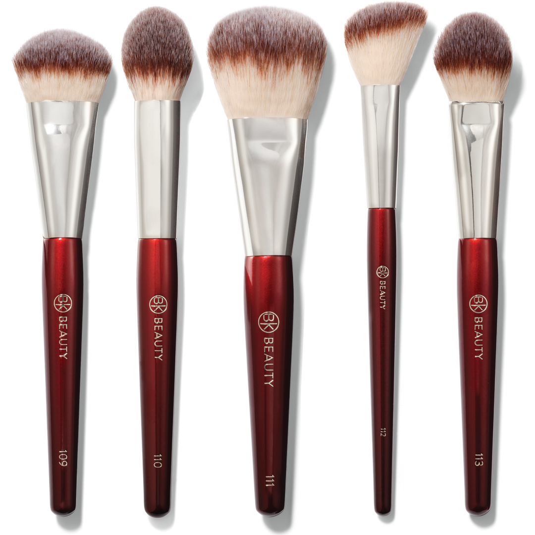 Five-piece face brush set inspired by BK Beauty best sellers for precise application and easy blending. Includes brushes 109, 110, 111, 112 and 113.