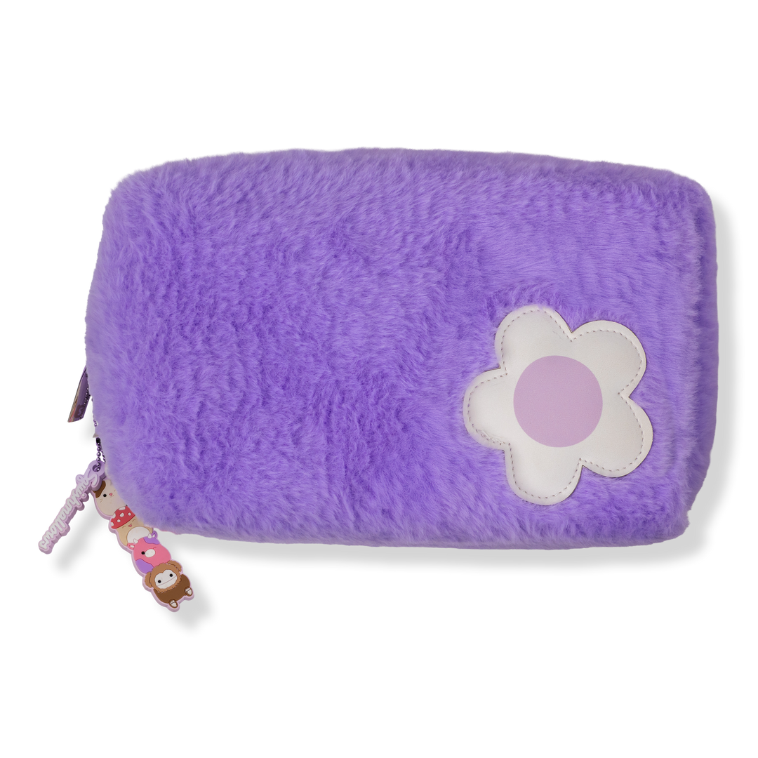Whether at home or on the go, store your makeup essentials in the Squishmallows Cosmetic Bag. This spacious, Squishmallows-soft pouch with double-zipper closure comes complete with an exclusive charm featuring Benny the Bigfoot, Cam the Cat, Malcolm the Mushroom and Patty the Cow.