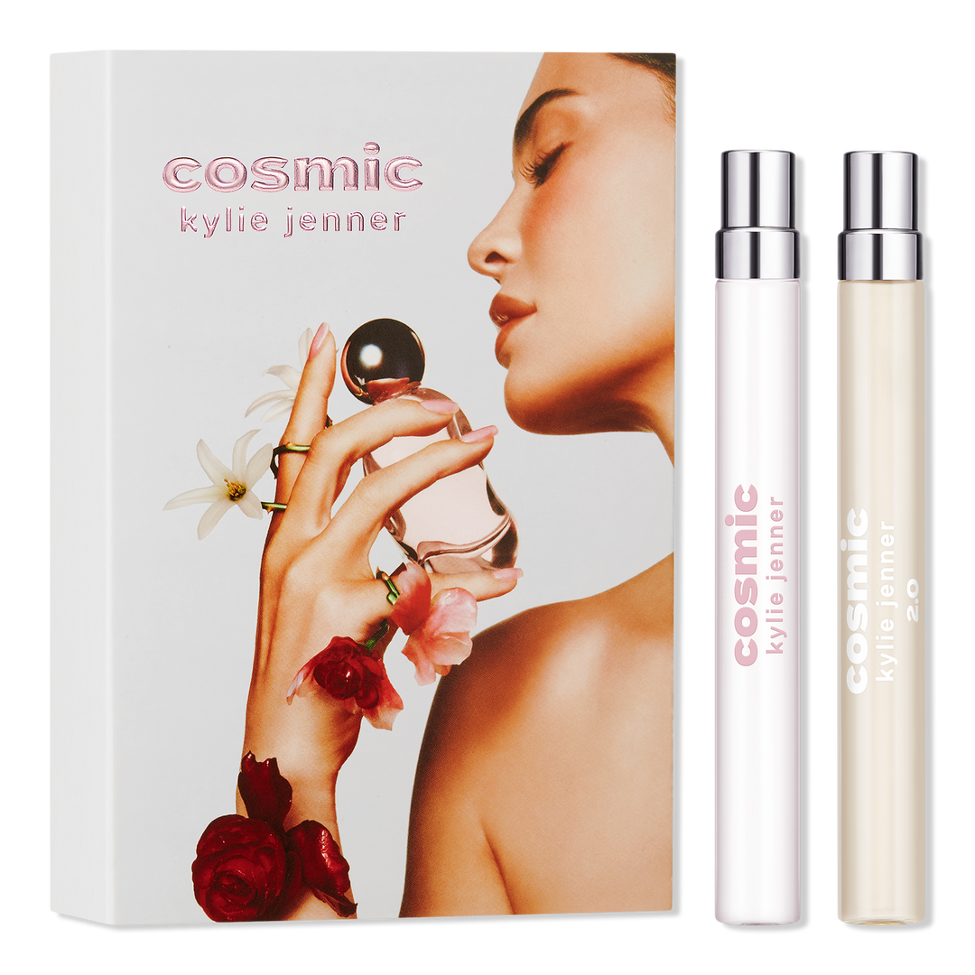 Experience the full Cosmic Kylie Jenner journey with the sweet, comforting scent of the original Cosmic Kylie Jenner and the bright, fresh fragrance of Cosmic Kylie Jenner 2.0. This eau de parfum gift set includes both fragrances in travel spray formats, perfect for on-the-go.