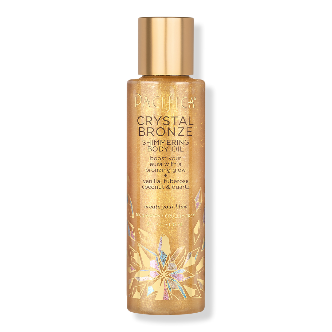 Get a kiss of shimmer and major moisture. Pacifica Crystal Bronze Shimmering Body Oil is infused with crystals and skin-loving oils. Let your light shine.