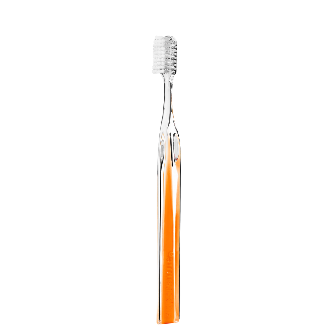 Anything but basic. This signature design helps ensure the proper brushing technique for cleaner, healthier teeth. With a patented 45° angled brush head, this toothbrush features five tufted rows of soft DuPont bristles.