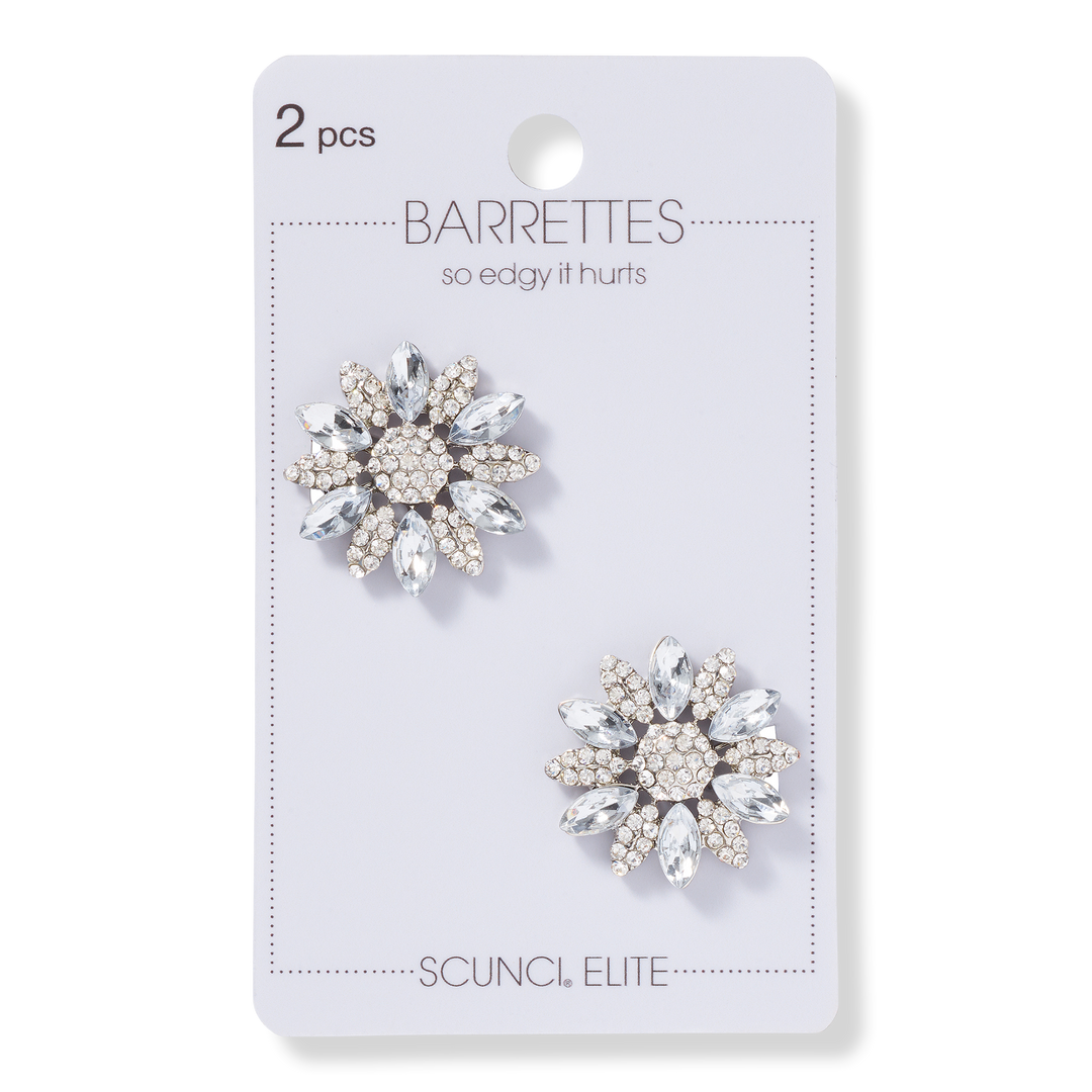 Pin a pair of Scünci Elite Flower Barrettes in your hair for a look that sparkles. Silver-tone clips embedded with crystals and metal accents hold any hair type.