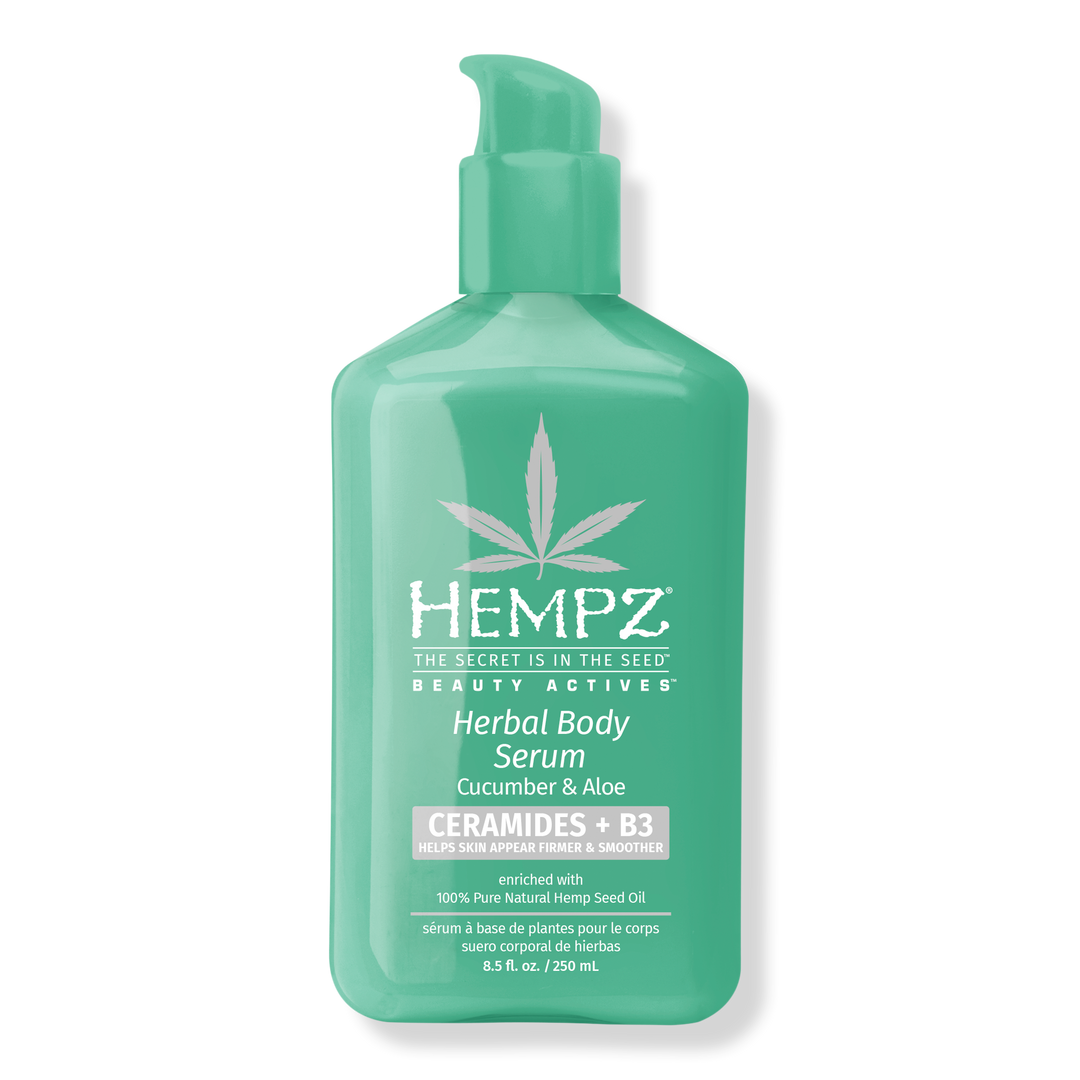 Hempz Cucumber and Aloe Herbal Body Serum With Ceramides & B3 helps smooth, strengthen, diminish dark spots, brighten and hydrate.