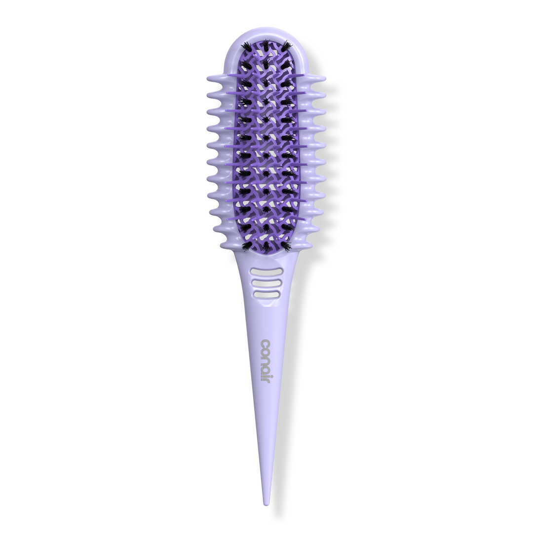 The Conair Curl Define Pro Detangler Brush is designed for loose curls to gently detangle, smooth, and define. Continuous grooves smooth and separate curls, vents help remove excess water and product, and mixed bristles gently detangle with no pulls to reduce frizz and breakage.