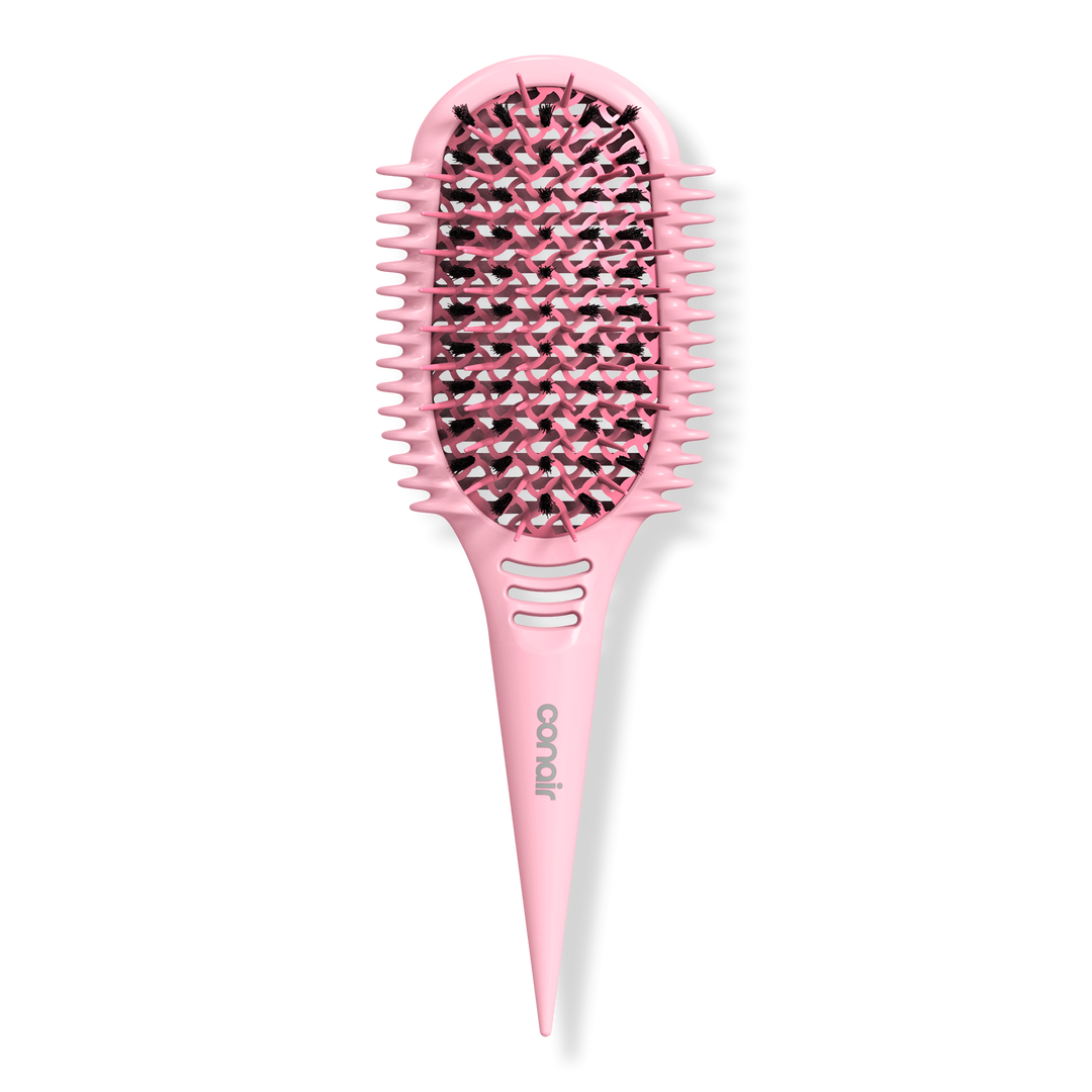 The Conair Curl Define Pro Detangler Brush is designed for hair with tight curls to gently detangle, smooth, and define. Continuous grooves smooth and separate curls, vents help remove excess water and product, and mixed bristles gently detangle with no pulls to reduce frizz and breakage.