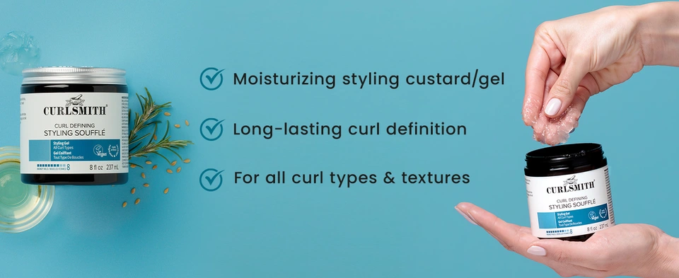 Curlsmith Curl Defining Styling Soufflé is a strong hold curl styling gel that provides moisture, shine and flexible definition for all curl types.