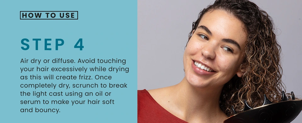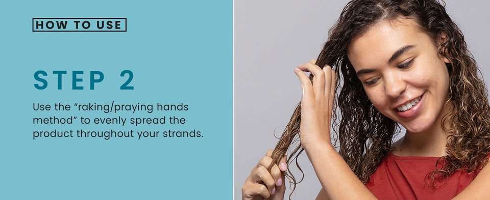 Use on wet hair. Take a dime sized amount per hair section. Rake and smooth the product throughout your strands to evenly coat them. Select your desired styling technique (scrunch/finger curls/shingle) to enhance and define. Air dry or diffuse. When fully dry, scrunch to break the cast.