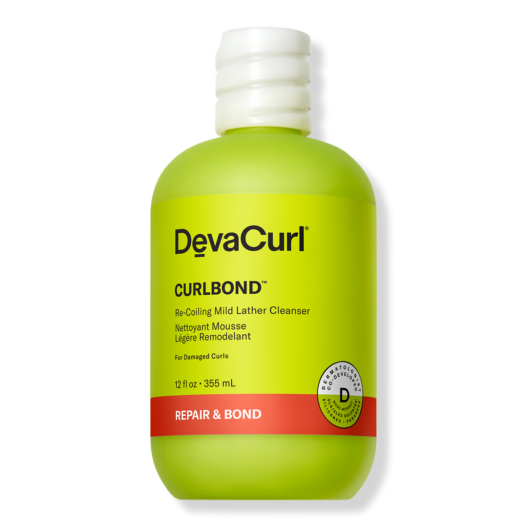 DevaCurl's CURLBOND Re-Coiling Mild Lather Cleanser with its patented CurlBond Complex re-coils damaged curls and works from the inside out to help re-link broken bonds, improve strength and protect from future damage. It maintains shine and leaves curls healthy-looking with enhanced definition.
