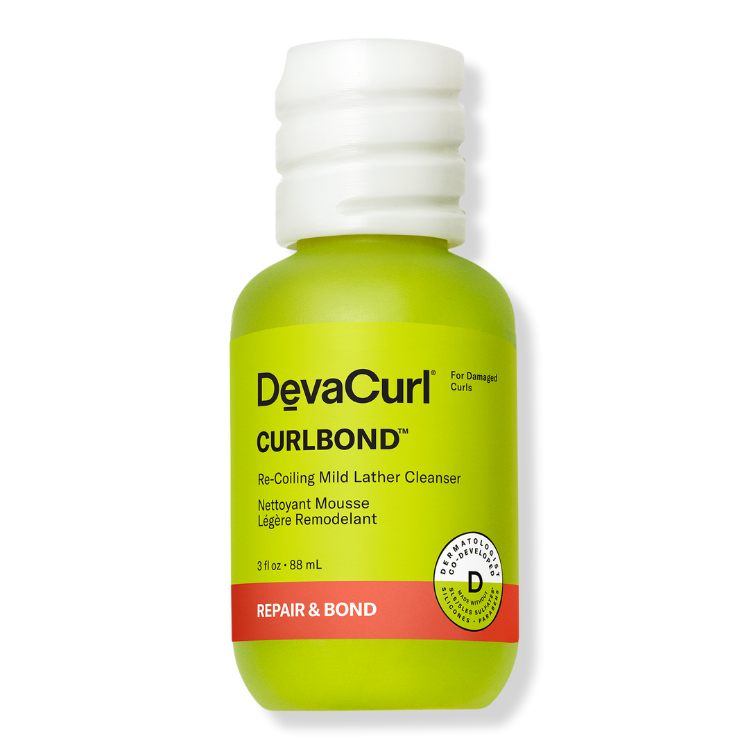 DevaCurl's CURLBOND Re-Coiling Mild Lather Cleanser with its patented CurlBond Complex re-coils damaged curls and works from the inside out to help re-link broken bonds, improve strength and protect from future damage. It maintains shine and leaves curls healthy-looking with enhanced definition.