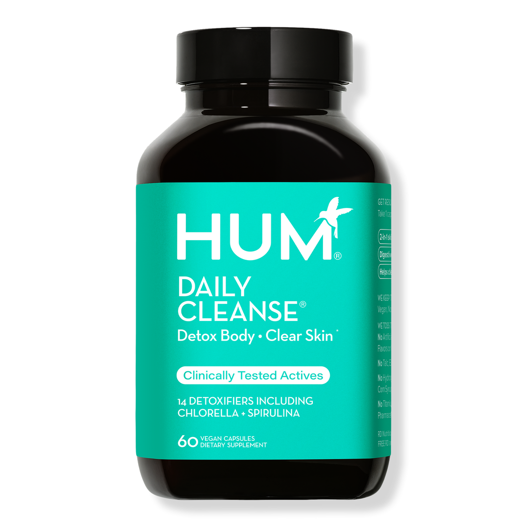 HUM Nutrition Daily Cleanse for Skin & Body Detox has 14 detoxifiers including chlorella + spirulina green algae for a gentle digestive cleanse and clear skin.