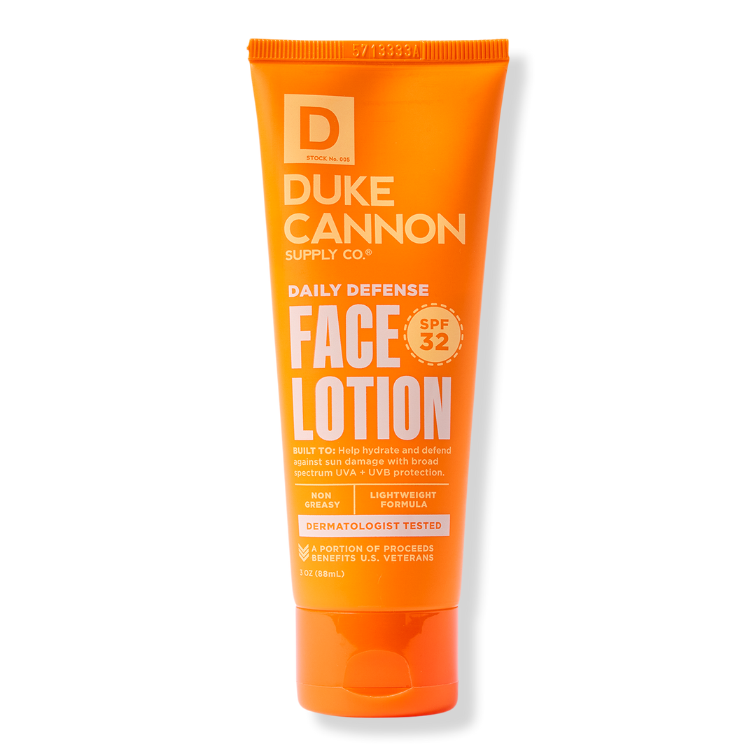 Duke Cannon needs to make hay while the sun is shining, but still wants to protect himself. Daily Defense Face Lotion helps hydrate and defend against damaging UV rays, leaving skin with no greasy residue like most sunscreens. Has a subtle, invigorating citrus scent.